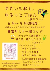 焼き芋や干し芋を作って、豊富温泉でお試し販売できる場があるか、あちらこちらで聞きまわっている中で「夏カフェ」をご提案いただきました。 周りにその話をしたら「え、夏に焼き芋⁉」という反応もいただいたんですけどね(^▽^;) […]